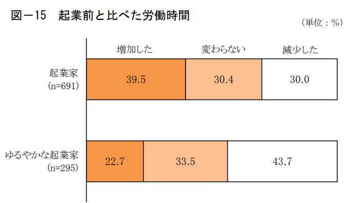 ガチ起業家も30%働く時間が短くなっていますが、ゆる起業家はさらに短くなっています。