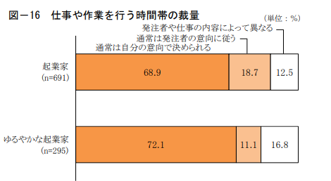7割以上が、仕事や作業を行う時間帯を「通常は自分の意向で決められる」と回答しています(図-16)。