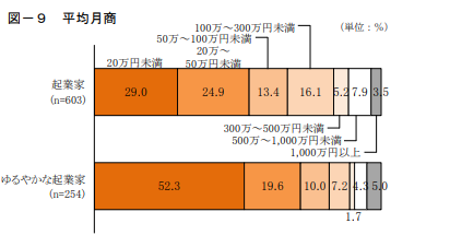平均月商が「20万円未満」である割合は、52.3%とガチ起業家(29.0%)を大きく上回っています。